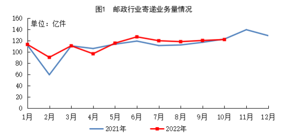 10月份,郵政行業(yè)寄遞業(yè)務(wù)量完成122.1億件,同比下降0.7%。其中,快遞業(yè)務(wù)量完成98.6億件,同比下降0.9%;郵政寄遞服務(wù)業(yè)務(wù)量完成23.5億件,同比增長0.1%。
