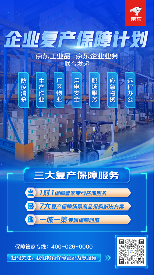 “企業(yè)復(fù)產(chǎn)保障計(jì)劃”通過整合京東的供應(yīng)鏈優(yōu)勢(shì)資源,首先解決的就是企業(yè)復(fù)工復(fù)產(chǎn)的高頻物資需求。在復(fù)產(chǎn)保障線上專區(qū),企業(yè)能夠快速完成防疫消殺、應(yīng)急物資、勞動(dòng)保護(hù)、職場(chǎng)服務(wù)等不同場(chǎng)景所需的物資采購。京東慧采SaaS專屬采購平臺(tái),支持尋源、在線協(xié)議、電子發(fā)票、自動(dòng)對(duì)賬等功能,幫助企業(yè)實(shí)現(xiàn)一站式、無接觸高效采購。還有專人專線的“服務(wù)管家”為企業(yè)提供售前、售中、售后全套服務(wù)方案。