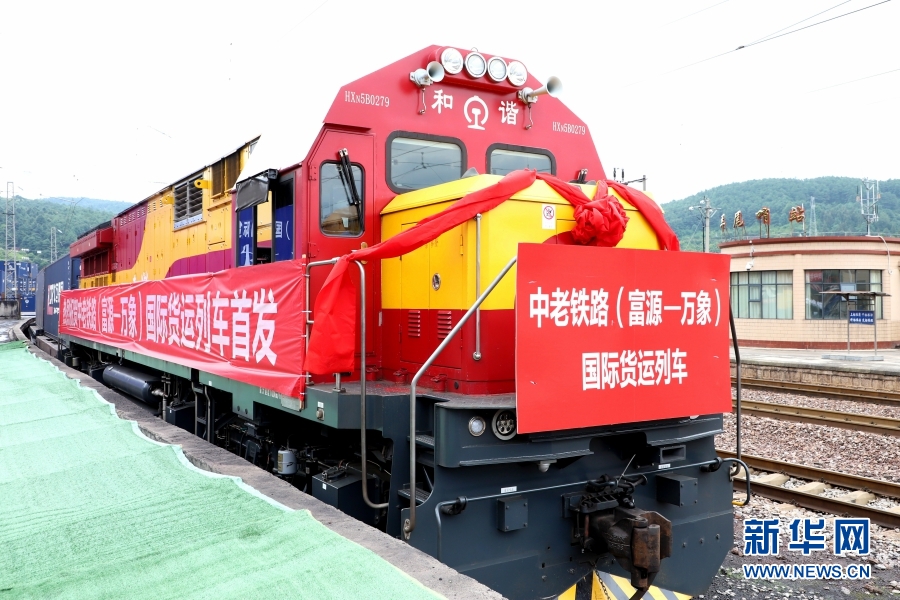 中老鐵路(富源—萬(wàn)象)國(guó)際貨運(yùn)班列(6月22日)。
