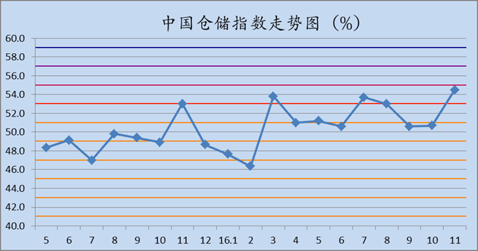 中國物流與采購聯(lián)合會(huì)發(fā)布的2016年11月份中國物流業(yè)景氣指數(shù)為59.3%較上月回升0.1個(gè)百分點(diǎn);中國倉儲(chǔ)指數(shù)為54.5%,較上月回升3.8個(gè)百分點(diǎn);中國公路物流運(yùn)價(jià)指數(shù)為116.8點(diǎn),比上月回升8%。