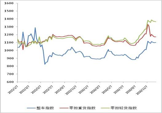 本周(2016年12月19日~12月23日),中國公路物流運(yùn)價(jià)指數(shù)1166.7點(diǎn),與上周基本持平,小幅回升0.01%。