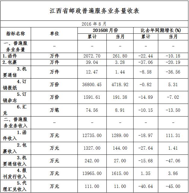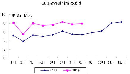 2016年8月,我省郵政企業(yè)和快遞服務企業(yè)業(yè)務收入(不包括郵政儲蓄銀行直接營業(yè)收入)本年累計完成48.45億元,同比增長27.93%,全國排第19位;全省郵政企業(yè)和快遞服務企業(yè)業(yè)務總量本年累計完成60.59億元,同比增長46.10%,全國排名第15位。