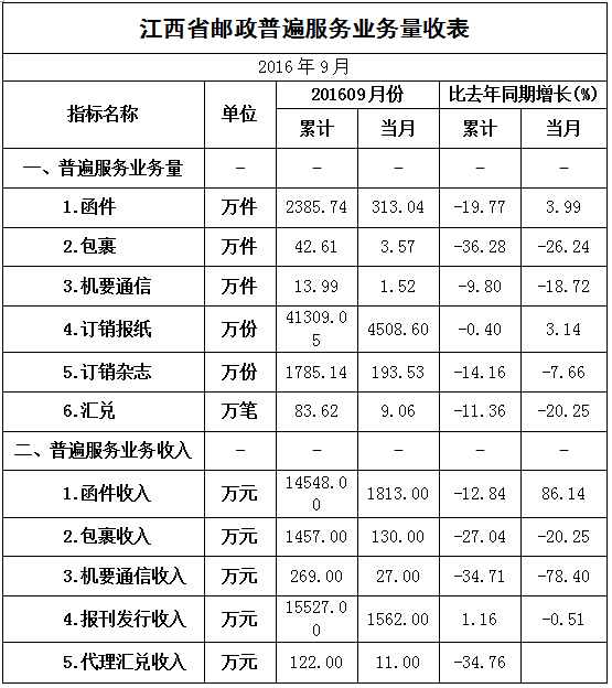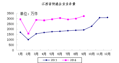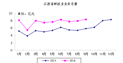 2016年9月,我省郵政企業(yè)和快遞服務(wù)企業(yè)業(yè)務(wù)收入(不包括郵政儲蓄銀行直接營業(yè)收入)本年累計完成54.75億元,全國排第19位,同比增長29.10%;全省郵政企業(yè)和快遞服務(wù)企業(yè)業(yè)務(wù)總量本年累計完成68.91億元,全國排名第15位,同比增長45.73%。