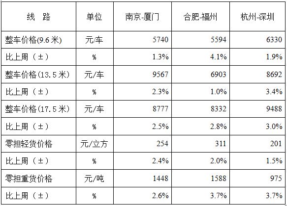 表1 本周部分線路平均價(jià)格及環(huán)比情況對(duì)比