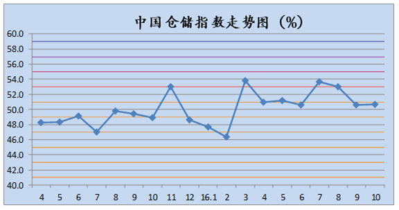 中國物流與采購聯(lián)合會發(fā)布的2016年10月份中國物流業(yè)景氣指數(shù)為59.2%較上月回升0.2個百分點;中國倉儲指數(shù)為50.7%,較上月回升0.1個百分點;中國公路物流運價指數(shù)為108.1點,比上月回升8.7%。