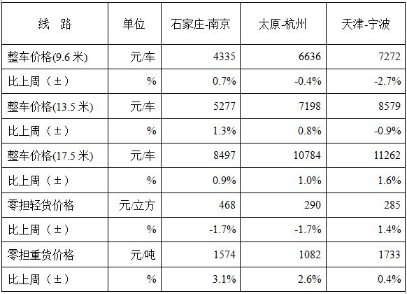 表1 本周部分線路平均價(jià)格及環(huán)比情況對(duì)比