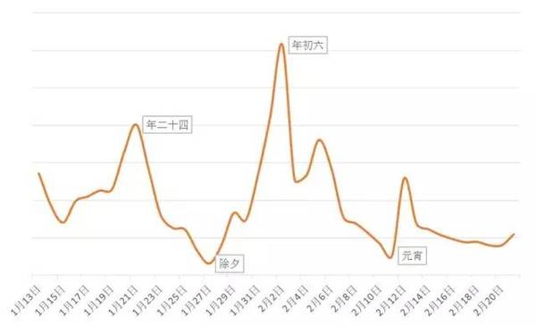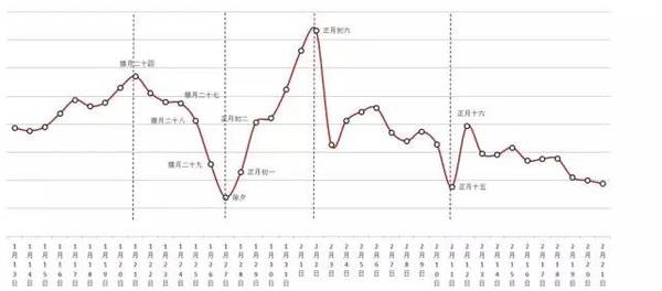 春運(yùn)40天高速公路緩行里程走勢(shì)圖
