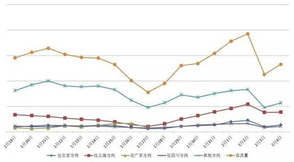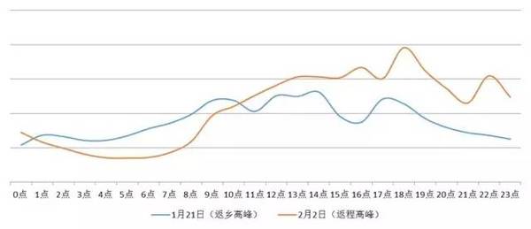 與去年相比,重要節(jié)點(diǎn)總流量同比上升11%。2017年春運(yùn)啟動(dòng)時(shí)間較2016年提前11天,節(jié)前返鄉(xiāng)重要節(jié)點(diǎn)流量高峰較去年相比,具有來得早、時(shí)間長、峰值高等特點(diǎn),節(jié)前高峰出現(xiàn)在春運(yùn)第9天(1月21日),較2016年春運(yùn)提前2天,步入平穩(wěn)高峰并一直持續(xù)至1月24日(臘月二十七)。