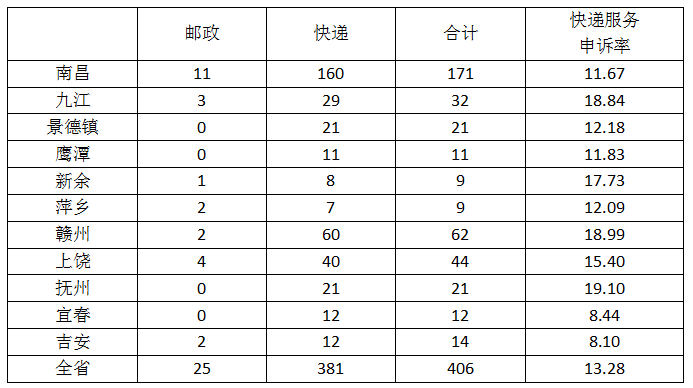 2016年3月,江西省郵政管理局通過“12305”郵政行業(yè)消費(fèi)者申訴電話和網(wǎng)站共受理消費(fèi)者申訴1644件。申訴中涉及郵政服務(wù)問題的119件,占總申訴量的7.2%;涉及快遞服務(wù)問題的1525件,占總申訴量的92.8% 。受理的申訴中有效申訴(確定企業(yè)責(zé)任的)為406件,比上年同期下降14%。有效申訴中涉及郵政服務(wù)問題的25件,占有效申訴量的6.2%;涉及快遞服務(wù)問題的381件,占有效申訴量的93.8%。經(jīng)調(diào)解消費(fèi)者申訴已全部妥善處理,為消費(fèi)者挽回經(jīng)濟(jì)損失59255.66元。3月份,消費(fèi)者對郵政管理部門申訴處理工作的滿意率為98.1%,對企業(yè)申訴處理結(jié)果的滿意率為97.6%,全省快遞服務(wù)有效申訴率為平均每百萬件快件13.28。