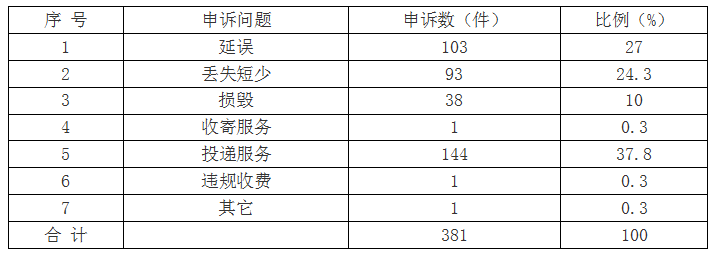 2016年3月,消費(fèi)者申訴郵政服務(wù)的主要問題是郵件延誤、郵件丟失短少和投遞服務(wù),占申訴總量的88%。