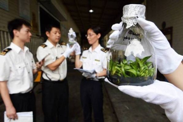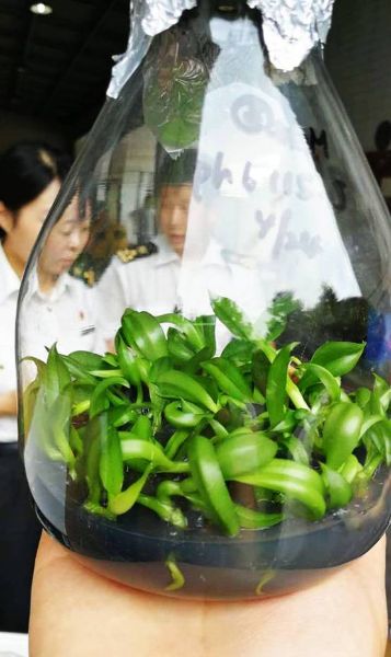 圖為:從日本進(jìn)口的大花蕙蘭幼苗快速通關(guān) 劉詩(shī)月/攝
