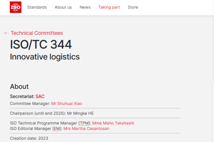 詳情請點(diǎn)擊鏈接ISO/TC 344 - 創(chuàng)新物流查看