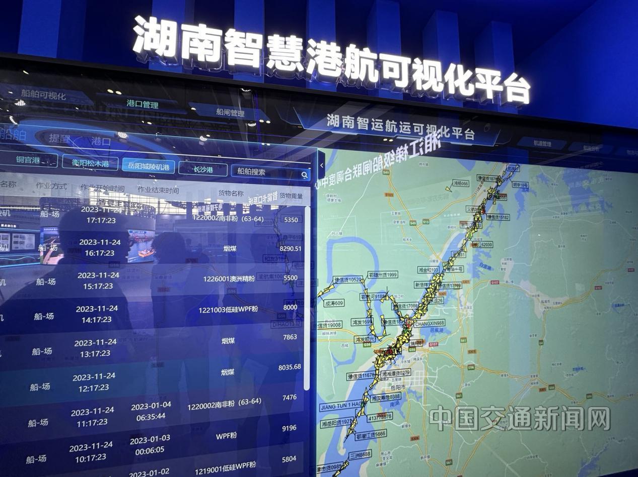 來到湖南省港航水利集團展區(qū),一塊電子大屏清晰地顯示著整個華中地區(qū)的航道地圖,走近細看,還能注意到這張圖正在對某條船只進行“動態(tài)跟蹤”——如同打點計時器,船舶每行駛一定距離,便會在屏幕的航道圖內(nèi)留下一個所在位置的標記,并注明到達時間。