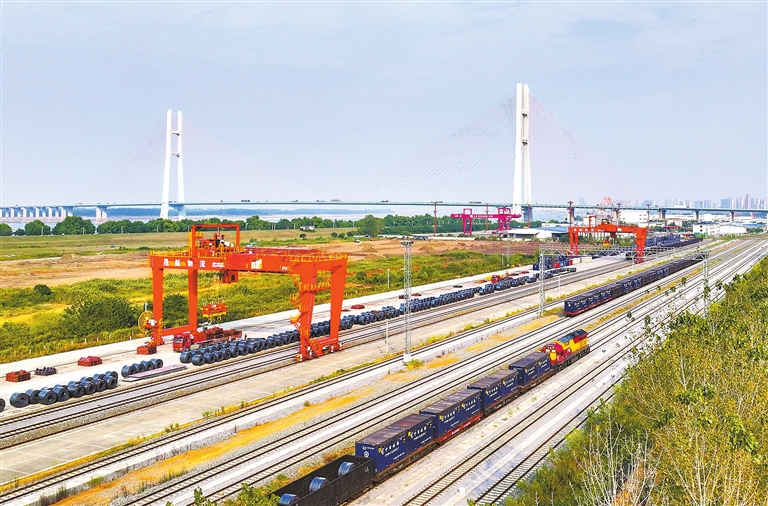 日前,位于九江經(jīng)濟(jì)技術(shù)開發(fā)區(qū)的城西港鐵路專用線上,一列貨運(yùn)列車正在進(jìn)行裝卸作業(yè)。九江城西港區(qū)鐵路專用線是國家推動長江干線港口鐵水聯(lián)運(yùn)、設(shè)施聯(lián)通行動計劃12條長江干線重點(diǎn)鐵路項(xiàng)目之一。近年來,隨著鐵路專用線開通運(yùn)營,九江港與京九線等國鐵干線實(shí)現(xiàn)了無縫銜接,有效提升九江“公鐵水”聯(lián)運(yùn)、江海聯(lián)運(yùn)等多式聯(lián)運(yùn)水平,對促進(jìn)江西省在中部地區(qū)率先崛起、推動長江經(jīng)濟(jì)帶綠色發(fā)展具有重要意義。