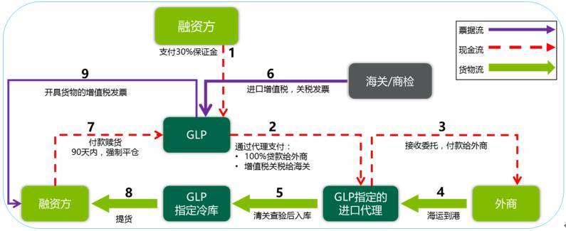①相關參與方先簽訂基礎合同:GLP與冷庫、代理簽訂合同,使其成為GLP指定合作供應商;GLP與融資方簽訂購銷合同。