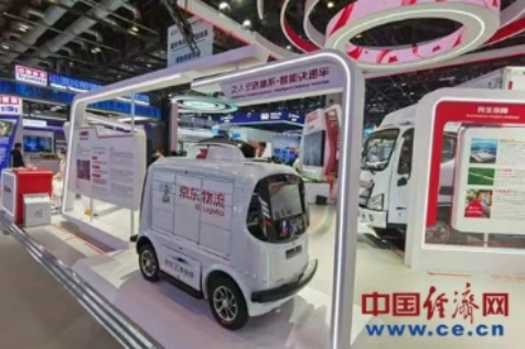 京東物流展臺的智能快遞車。(中國經(jīng)濟(jì)網(wǎng)記者 佟明彪/攝)