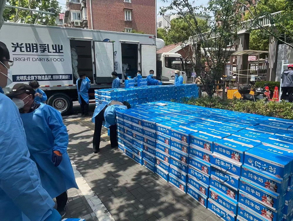 保供期間,光明領(lǐng)鮮物流除了做好光明牛奶產(chǎn)品的保供配送,還全力服務(wù)于公益活動(dòng),在此期間,領(lǐng)鮮物流臨時(shí)啟用浦東新區(qū)的成山路乳品八廠倉(cāng)庫(kù)作為中轉(zhuǎn)樞紐,為全市60000多名獨(dú)孤老人、周浦醫(yī)院的醫(yī)務(wù)工作者、衛(wèi)計(jì)委、臨汾路等街道送上牛奶、糧油、豬肉、蔬菜等保供物資,累計(jì)總配送車次300趟次,總保障噸位達(dá)680噸。