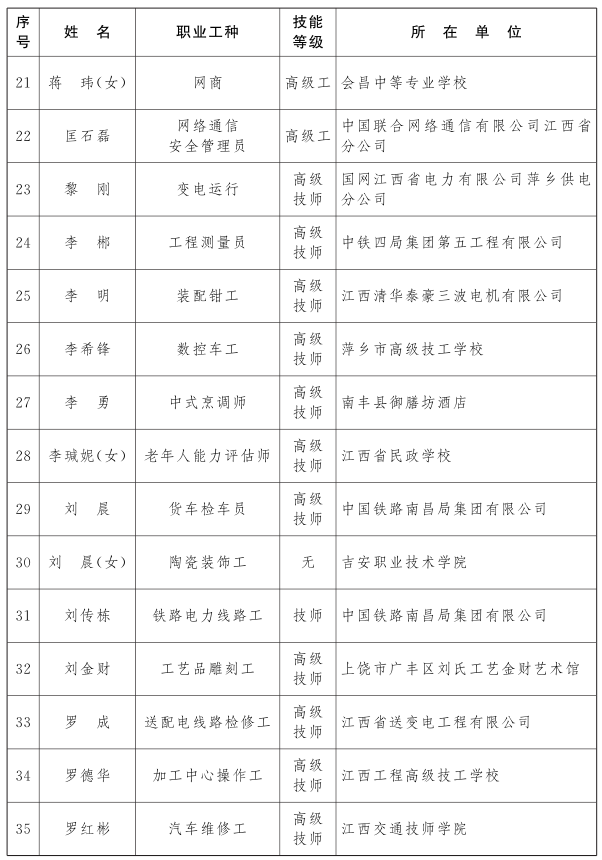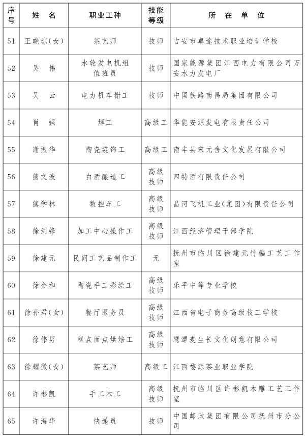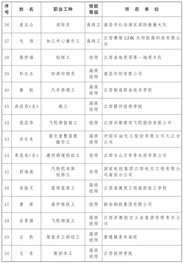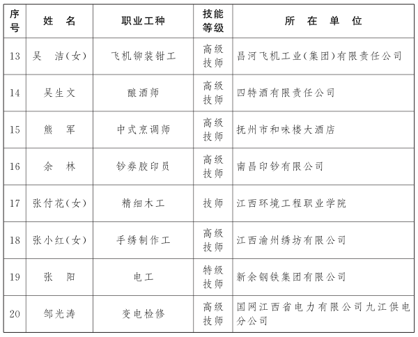 附件:第七屆江西省優(yōu)秀高技能人才表彰名單