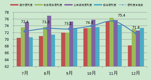 反映快遞物流外部運(yùn)營(yíng)環(huán)境的便利度指數(shù)有所回落。12月份,便利度指數(shù)為7.8%,比上月回落3.6個(gè)百分點(diǎn)。分項(xiàng)來(lái)看,通行便利度指數(shù)為68.3%,比上月下降7.1個(gè)百分點(diǎn),政務(wù)服務(wù)便利度指數(shù)為73%,比上月下降3.3個(gè)百分點(diǎn),公共設(shè)施便利度指數(shù)為72.6%,比上月下降3.1個(gè)百分點(diǎn),投送便利度指數(shù)為73.4%,比上月下降0.9個(gè)百分點(diǎn)。