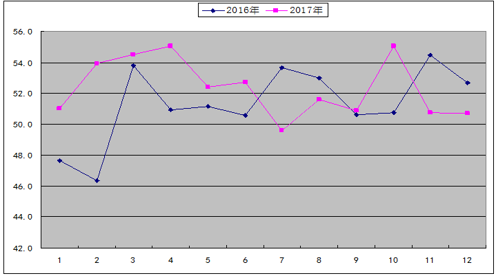 2017年,國(guó)內(nèi)經(jīng)濟(jì)運(yùn)行良好,下游行業(yè)表現(xiàn)穩(wěn)健,供需雙側(cè)聯(lián)動(dòng)上行,在良好的宏觀經(jīng)濟(jì)背景下,我國(guó)倉儲(chǔ)業(yè)經(jīng)濟(jì)活動(dòng)繼續(xù)保持穩(wěn)步回升的態(tài)勢(shì),行業(yè)需求持續(xù)增長(zhǎng),效益有所提升。從中國(guó)倉儲(chǔ)指數(shù)來看,2017年,除7月份跌落至50%以下的收縮區(qū)間外,其余各月均保持在擴(kuò)張區(qū)間,全年該指數(shù)平均水平保持在52.4%的較高水平,高于2016年1.1個(gè)百分點(diǎn)。