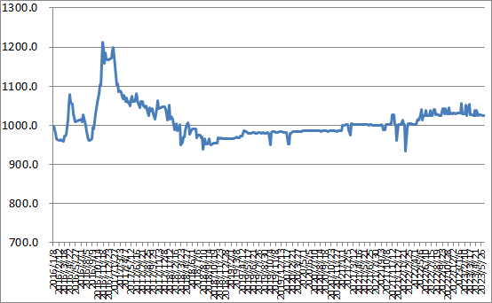 圖1 2016-2023年各周中國公路物流運價指數(shù)