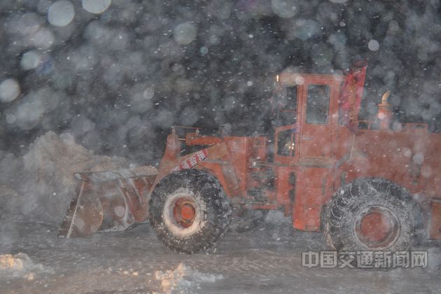 3月11日晚,武警交通二支隊(duì)大型機(jī)械快速清理川藏公路積雪搶通。田興 攝