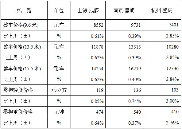 表1 本周部分線路平均價(jià)格及環(huán)比情況對(duì)比
