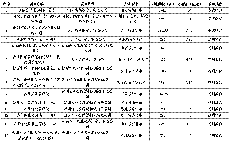 為促進(jìn)物流業(yè)“降本增效”,加快貨運(yùn)樞紐(物流園區(qū))建設(shè),我部委托咨詢評估單位對申報(bào)“十三五”期貨運(yùn)樞紐(物流園區(qū))投資補(bǔ)助資金的項(xiàng)目進(jìn)行了咨詢評估。經(jīng)統(tǒng)籌研究,按照《交通運(yùn)輸部貨運(yùn)樞紐(物流園區(qū))投資補(bǔ)助項(xiàng)目管理辦法(暫行)》相關(guān)要求,將擬安排車購稅資金支持的項(xiàng)目予以公示。