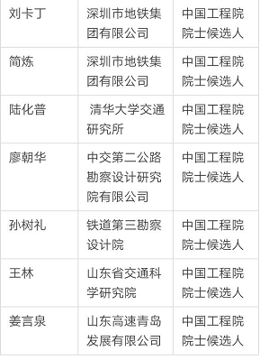 截至2月20日,全國(guó)已有多個(gè)學(xué)會(huì)和?。ㄊ小^(qū))科協(xié)陸續(xù)公示了2017年院士候選人。據(jù)不完全統(tǒng)計(jì),交通運(yùn)輸領(lǐng)域有以下候選人(排序不分先后):