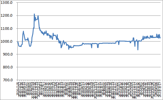 圖1 2016-2023年各周中國公路物流運(yùn)價指數(shù)