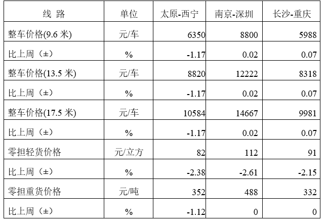 表1 本周部分線路平均價格及環(huán)比情況對比
