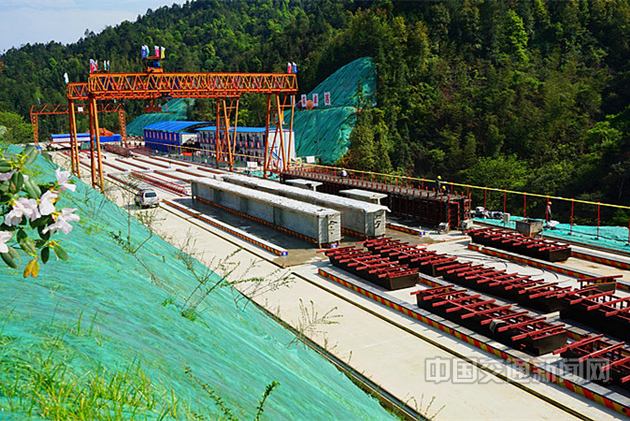 一是精心選擇場址。A6標(biāo)全長7.483千米,管段內(nèi)山連山。山多橋多,標(biāo)段內(nèi)共有13座大橋,總長4.289千米,占標(biāo)段總長的57.3%,基本是橋接橋,最長路基只有300多米。想在這樣的深山老林里尋塊地建梁場,實屬不易。踏遍青山,項目部最終決定將一號制梁場建在兩座大橋之間的挖方路段上,盡管長約270米、寬約25米,卻能滿足8座大橋的梁板預(yù)制,而且既不破壞紅線外自然環(huán)境,又能減少臨時征地,完全符合廣吉項目的“綠色公路建設(shè)”理念。